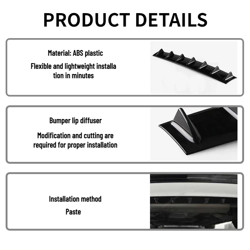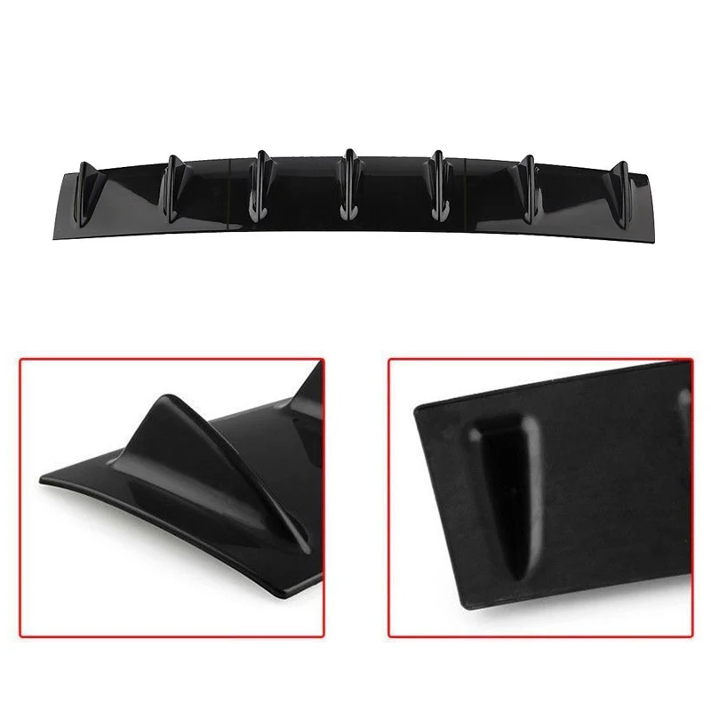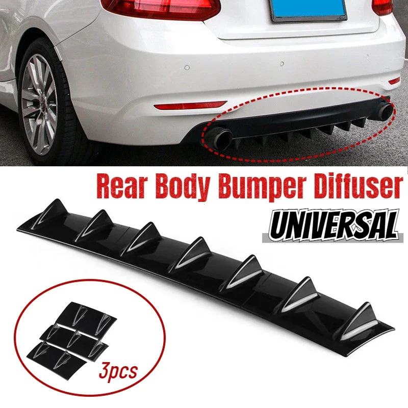 3pcs Universal Rear Bumper Spoiler Diffuser Gloss Black 7 Wing Shark Fin Style Lower Body Lip