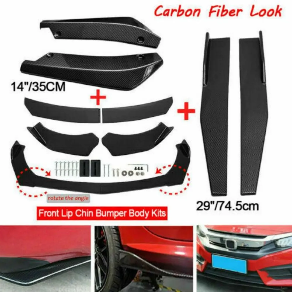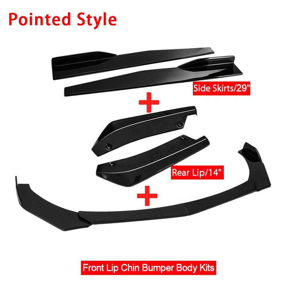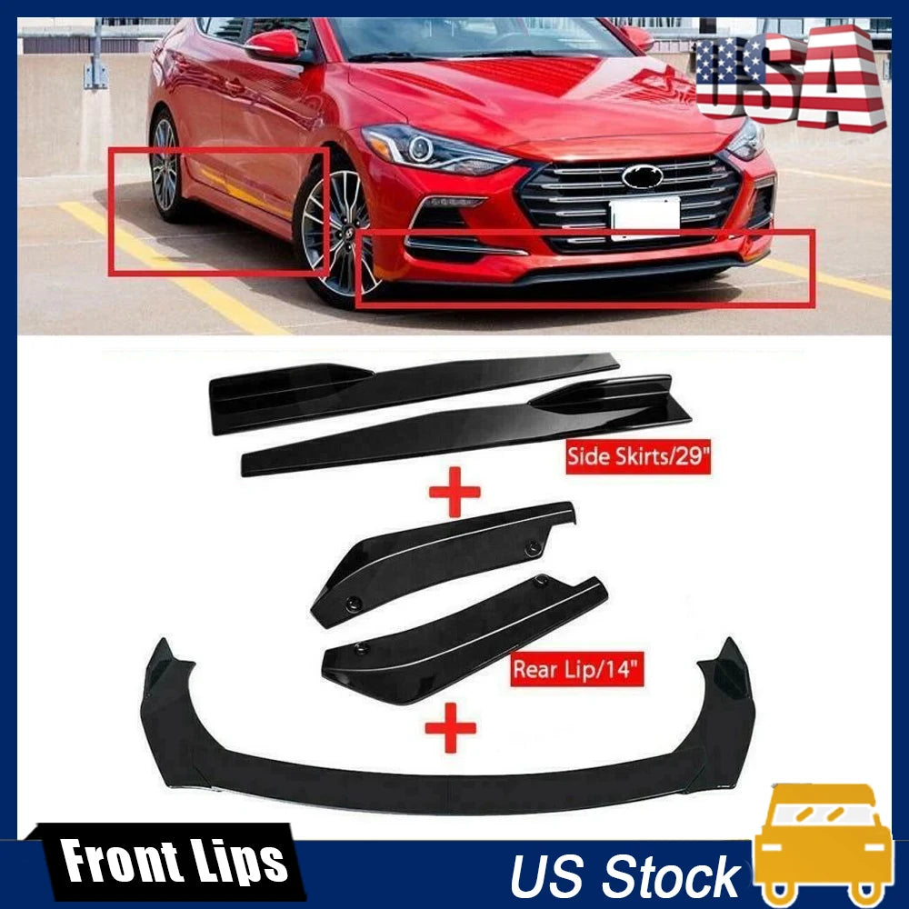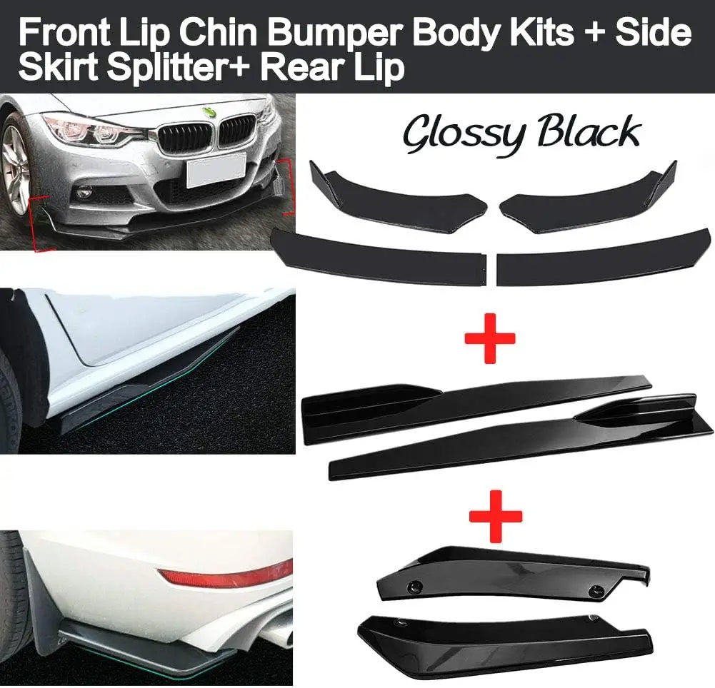 8 Pcs(1 Set) Front Bumper Lip + 29"/74.5CM Side Skirt Splitter + 14"/35CM Rear Lip( with Screws kit).