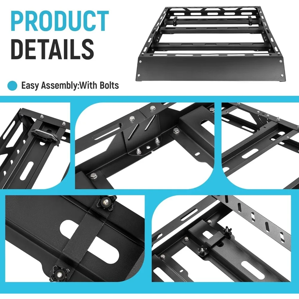 - High-strength Structure: The roof cargo basket is made of steel, making sure this basket high strength and not easy to damage. Featuring black powder coated surface finish, making this basket against to wear and tear