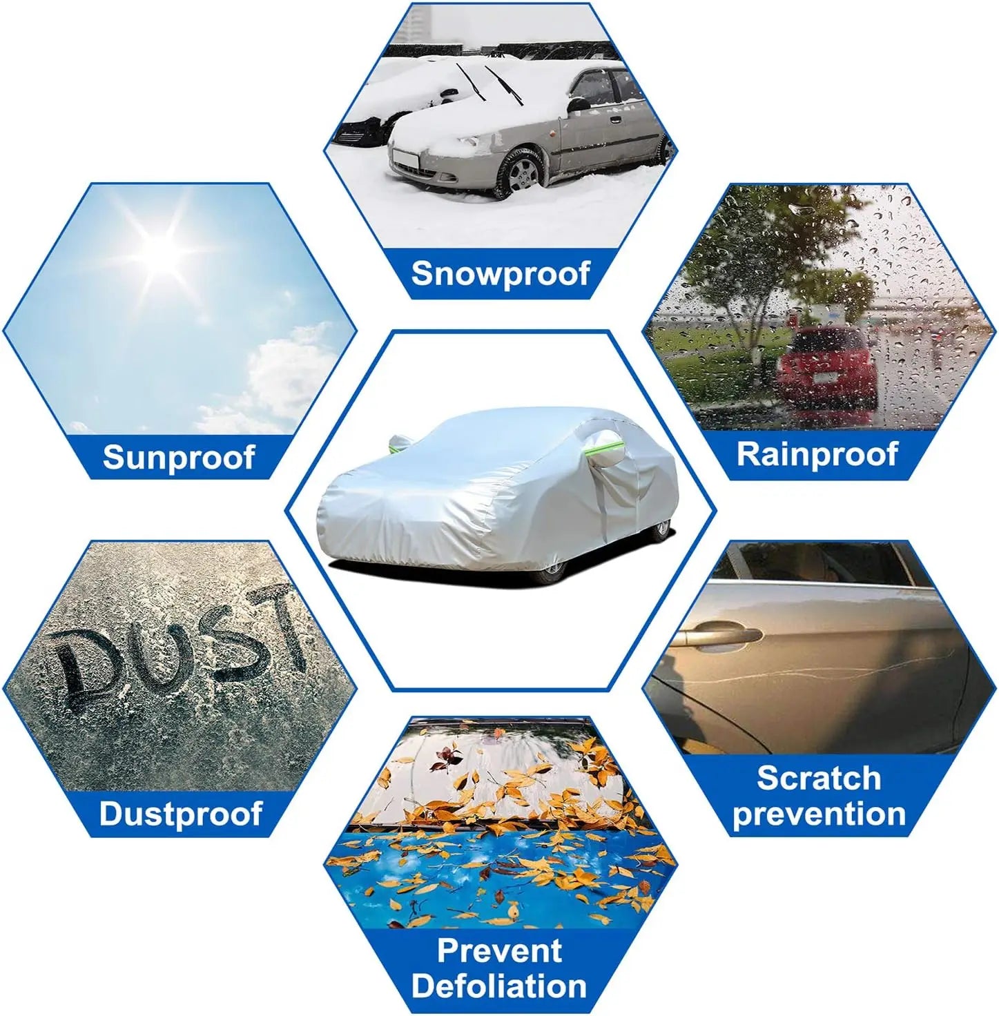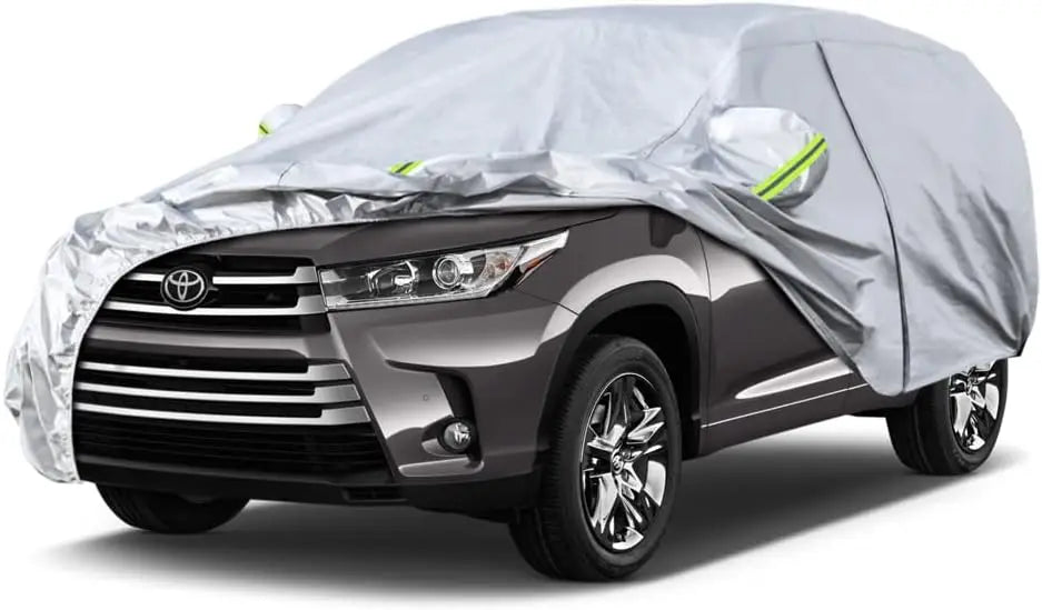 【Perfect Fit】This custom-fit car cover is designed specifically for the Toyota Highlander models from 2007 to 2025. It features accurate size measurements to ensure a snug and secure fit, eliminating worries about incorrect sizing and providing full-body protection for your vehicle. 【Advanced Material】Crafted from high-quality, multi-layer materials, this cover offers superior durability and security. It is fully waterproof, making it ideal for rain and snow protection during winter months. The highly reflective aluminum fabric effectively blocks UV rays and keeps your car cool in summer, while the soft inner lining prevents scratches and damage to the car's paintwork. 【Convenient Features】1. Driver-side door zipper design allows easy access without removing the entire cover. 2. Windproof straps secure the cover in place, preventing it from being blown away by strong winds. 3. Six reflective stripes enhance visibility at night for added safety. 4. Mirror pockets ensure a better fit and simplify installation. 5. Includes a waterproof storage bag for easy folding and portability in your trunk. 【All-Weather Protection】This thick weatherproof cover provides comprehensive defense against various elements such as dust, snow, industrial pollutants, bird droppings, leaves, pollen, acid rain, and more. It safeguards your vehicle year-round whether parked outdoors or indoors. 【Customer Assurance】We offer a reliable service commitment to ensure your satisfaction with every purchase. If you have any questions or concerns, our support team is ready to assist promptly for a worry-free shopping experience.