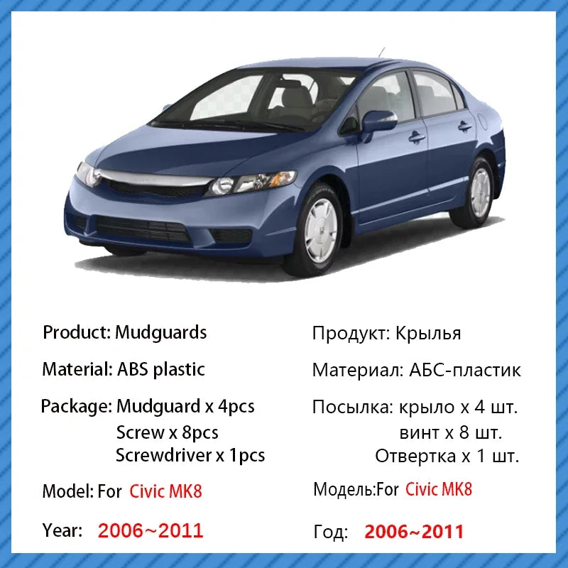 For Honda Civic MK8 2006 2007 2008 2009 2010 2011 Mud Flaps Mudguards Anti-splash Guards Front Rear Wheel Fender Car Accessories