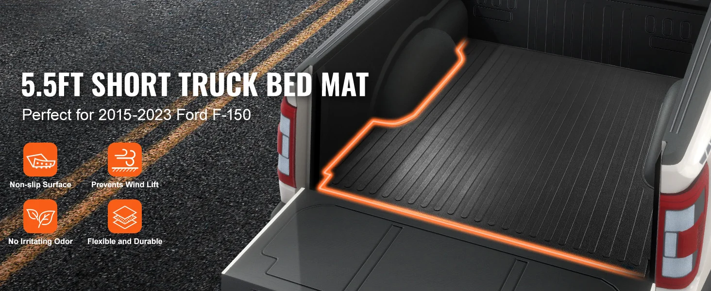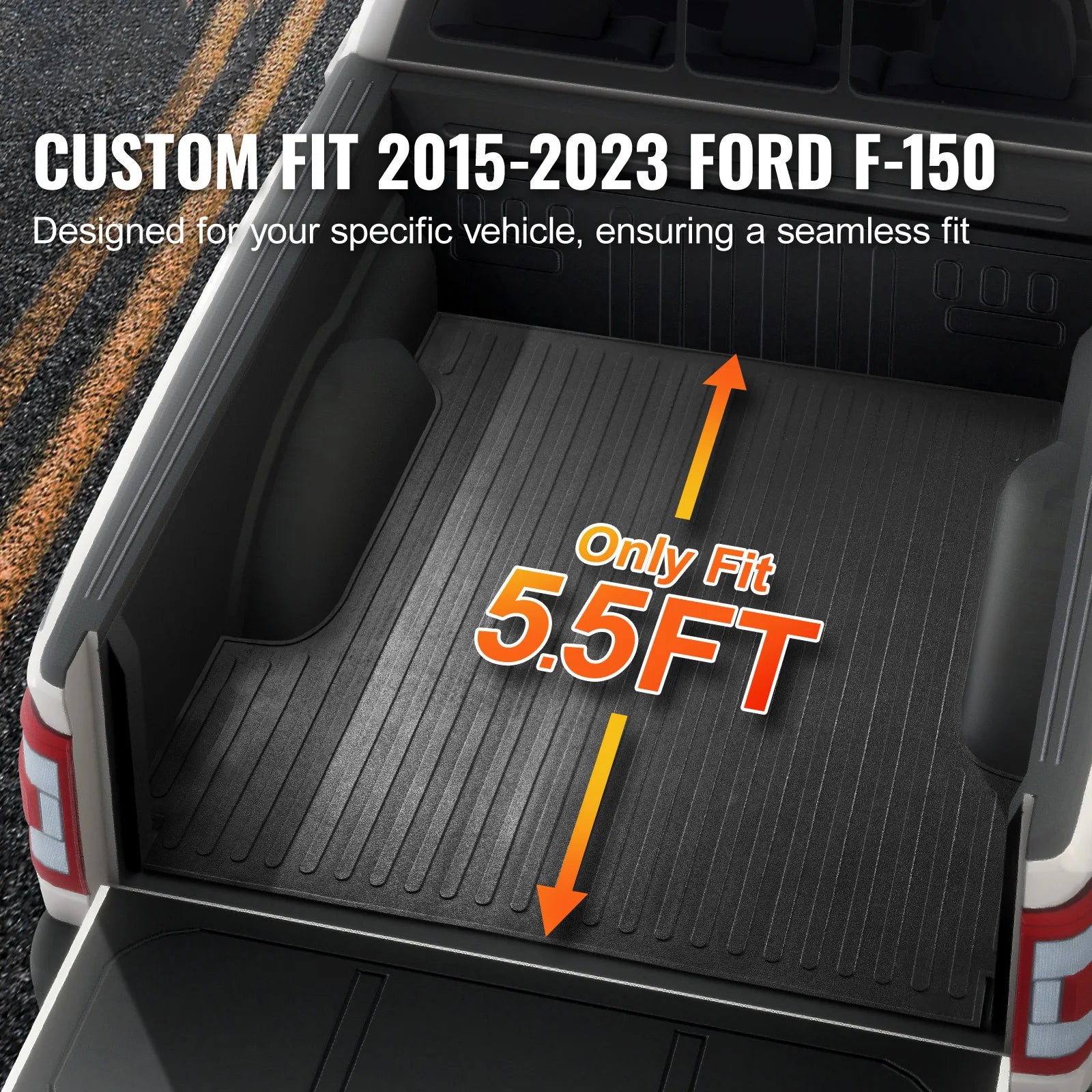 Custom Fit: The truck bed mat is tailored exclusively for 2015–2023 FORD F150 models, designed to fit the 5.5FT short bed. Our truck bed mat perfectly conforms to the vehicle's curvature, allowing for quick and smooth installation. We recommend verifying compatibility with your model before purchasing.
