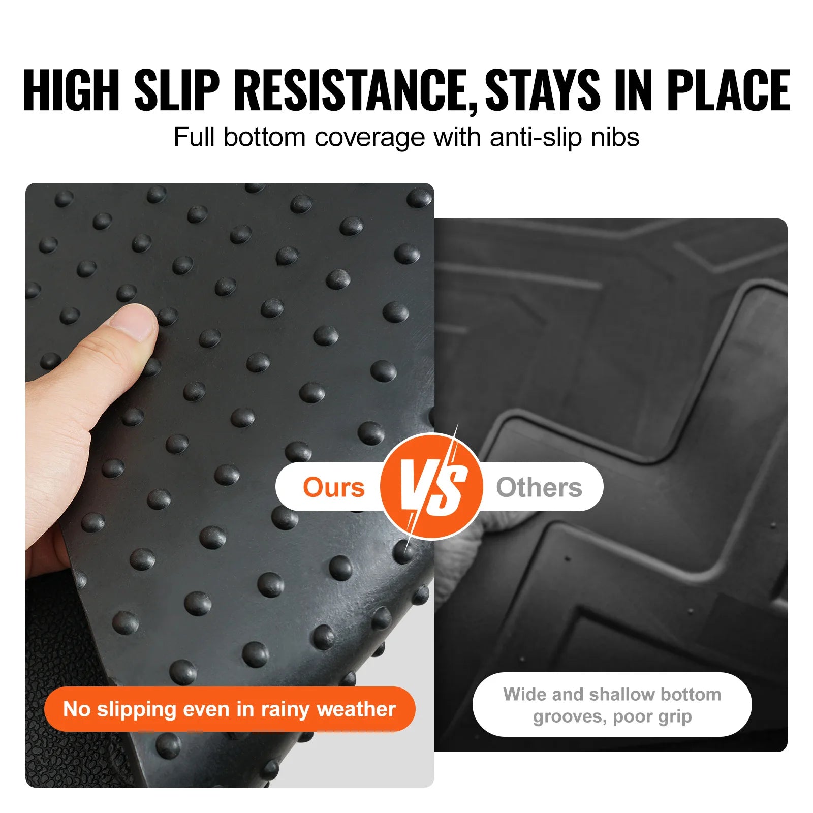 Deep Groove Design: The textured surface design serves a dual-purpose by effectively preventing slippage and capturing spills, stains, and sediment that may accumulate within the grooves, preventing them from splattering and maintaining cleanliness.