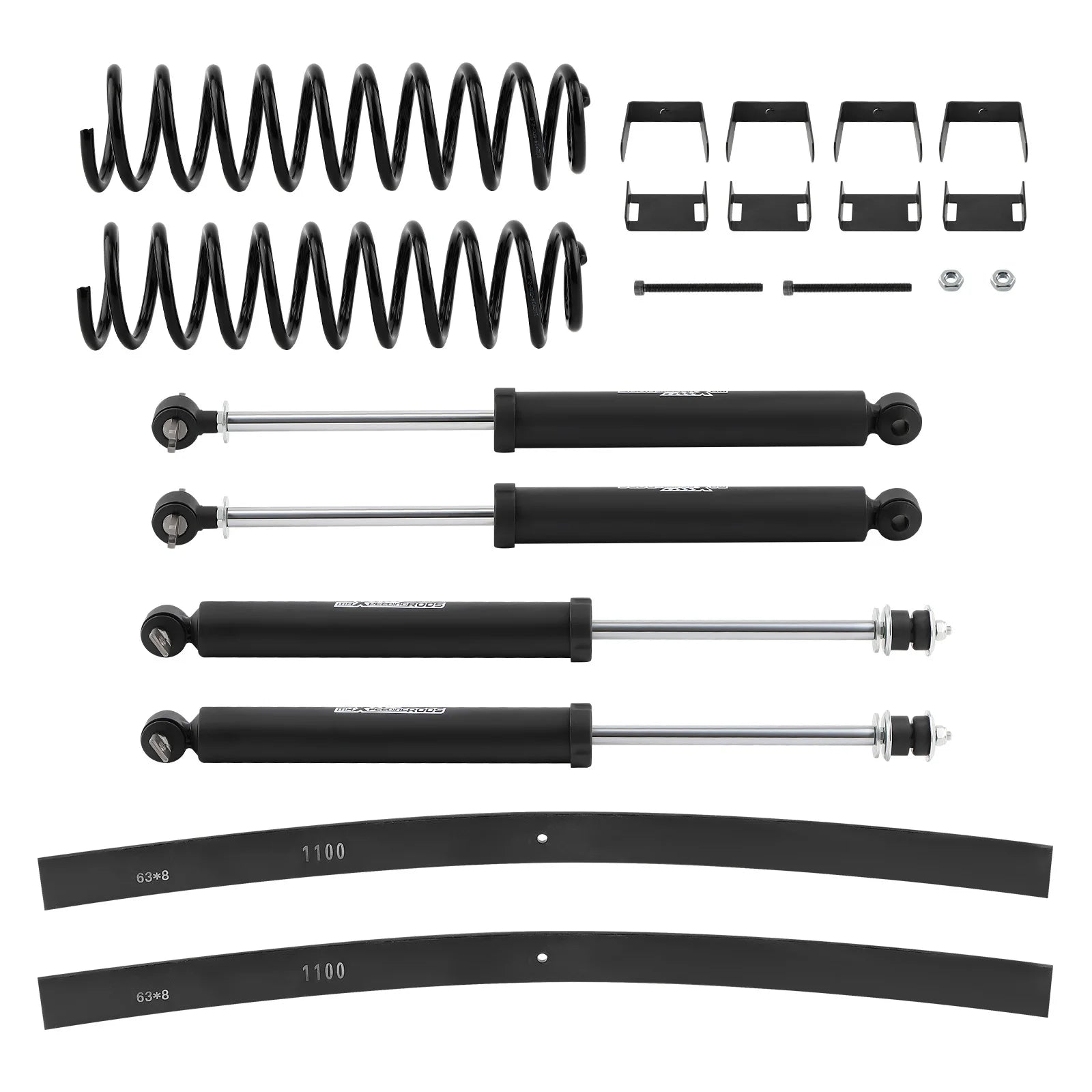 This lift kit includes a set of front lift springs and rear lift springs, which help level the vehicle while providing enough clearance to run up to 31" tires.