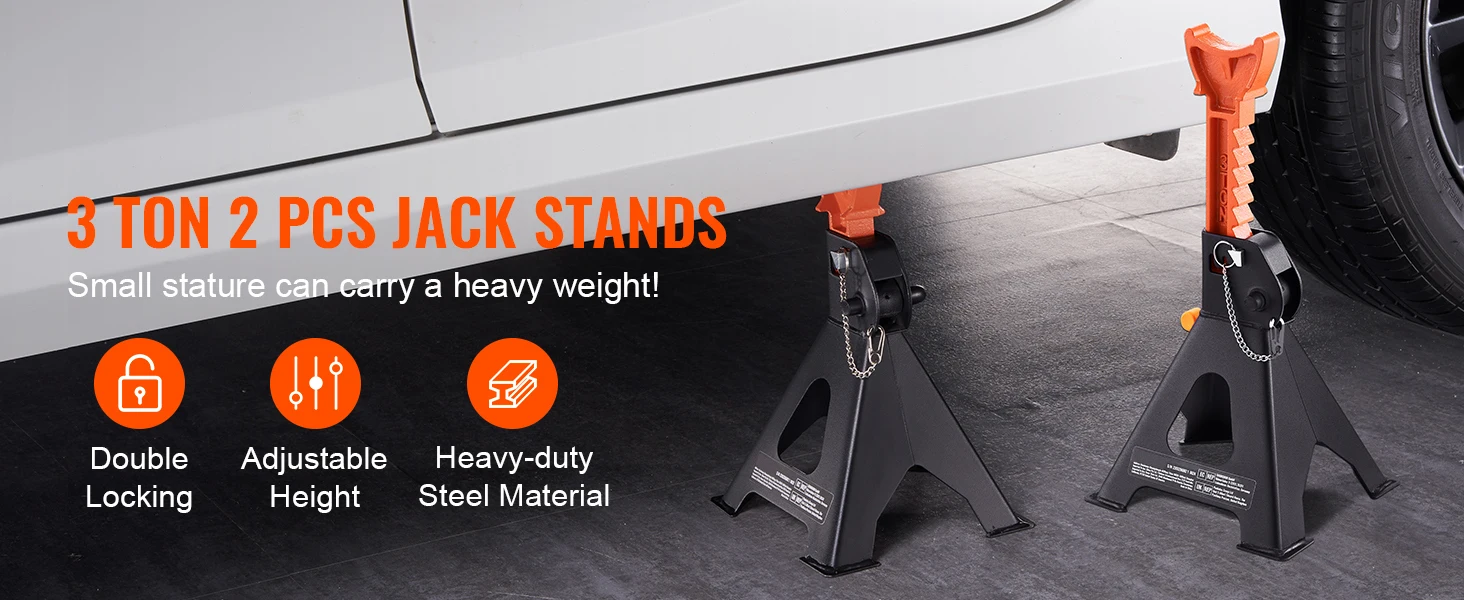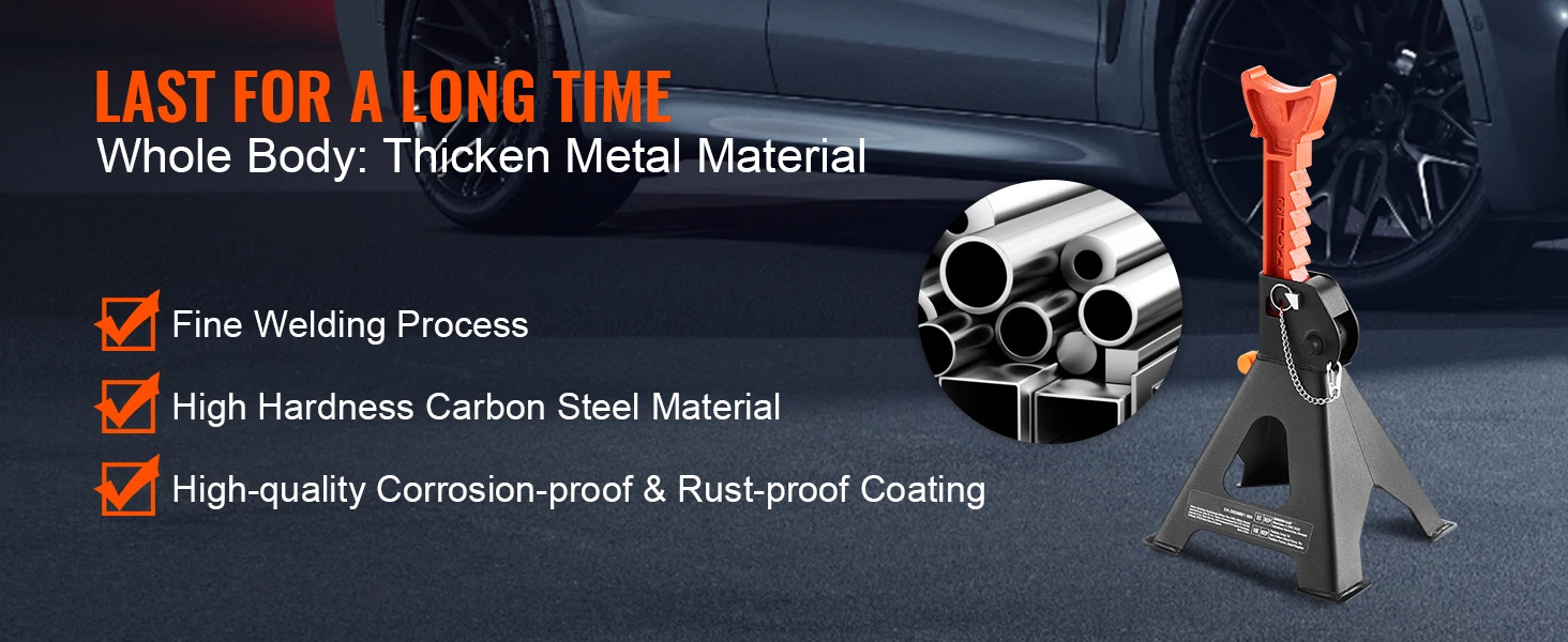 Premium Material & Craftsmanship: We've upgraded our 3-ton jack stands! They now have a strong carbon steel base and a ratchet bar made of cast iron with a rust-proof coating. Plus, we've improved our packaging! Your jack will arrive safely during transportation.