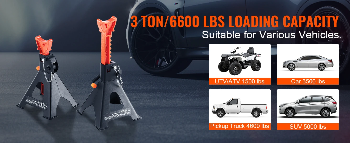 Handle A Big Load: Are you dealing with tough lifting jobs? Our jack stands have a 3-ton/6600 lbs loading capacity and can raise SUVs, pickups, cars, UTVs, and ATVs. They conform to CE standards, ensuring your safety during use. Feel confident during vehicle repairs!