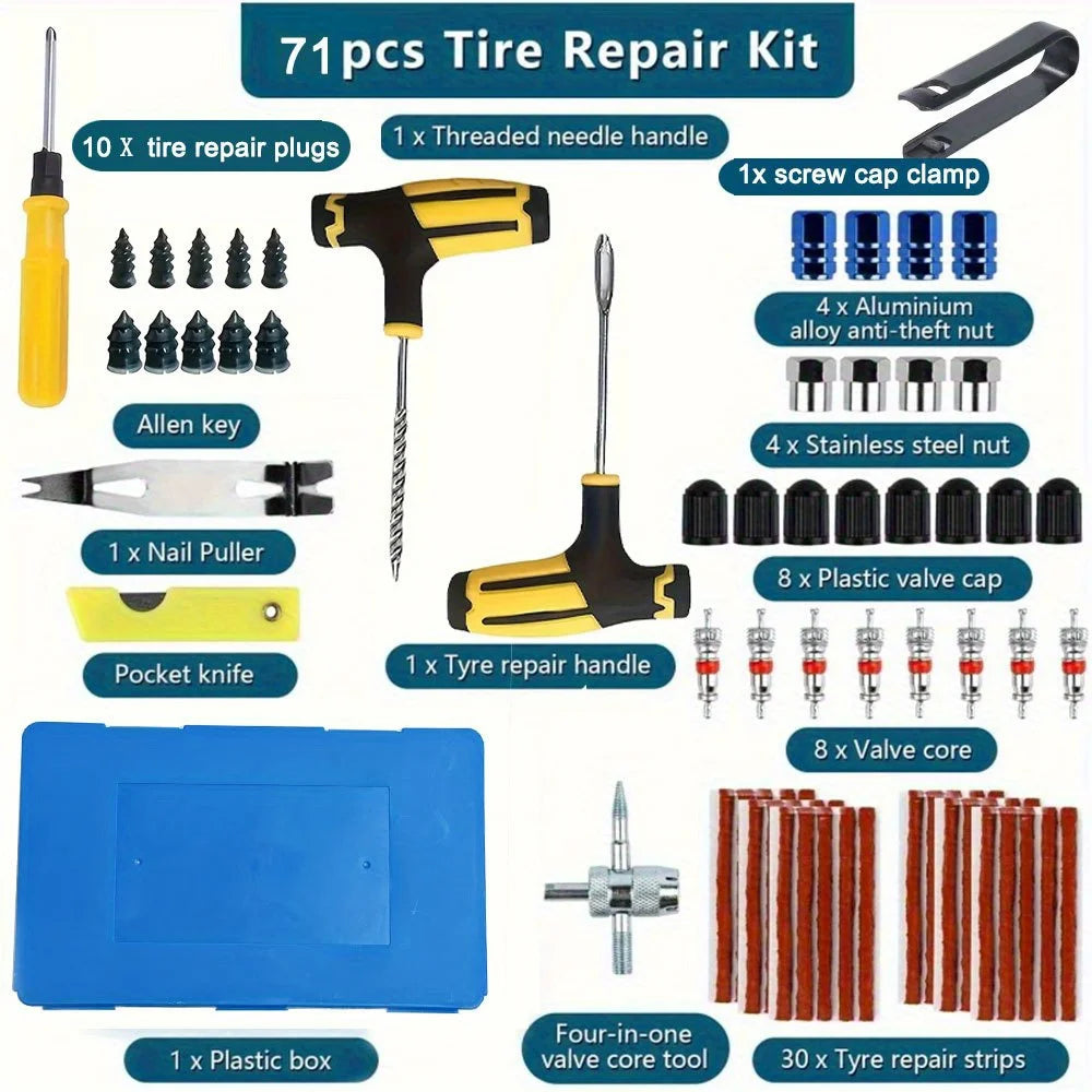 71pcs Car Tire Repair Kit Puncture Plug Tools Puncture Emergency for Universal Tire Strips Glue Repair Tool Kit