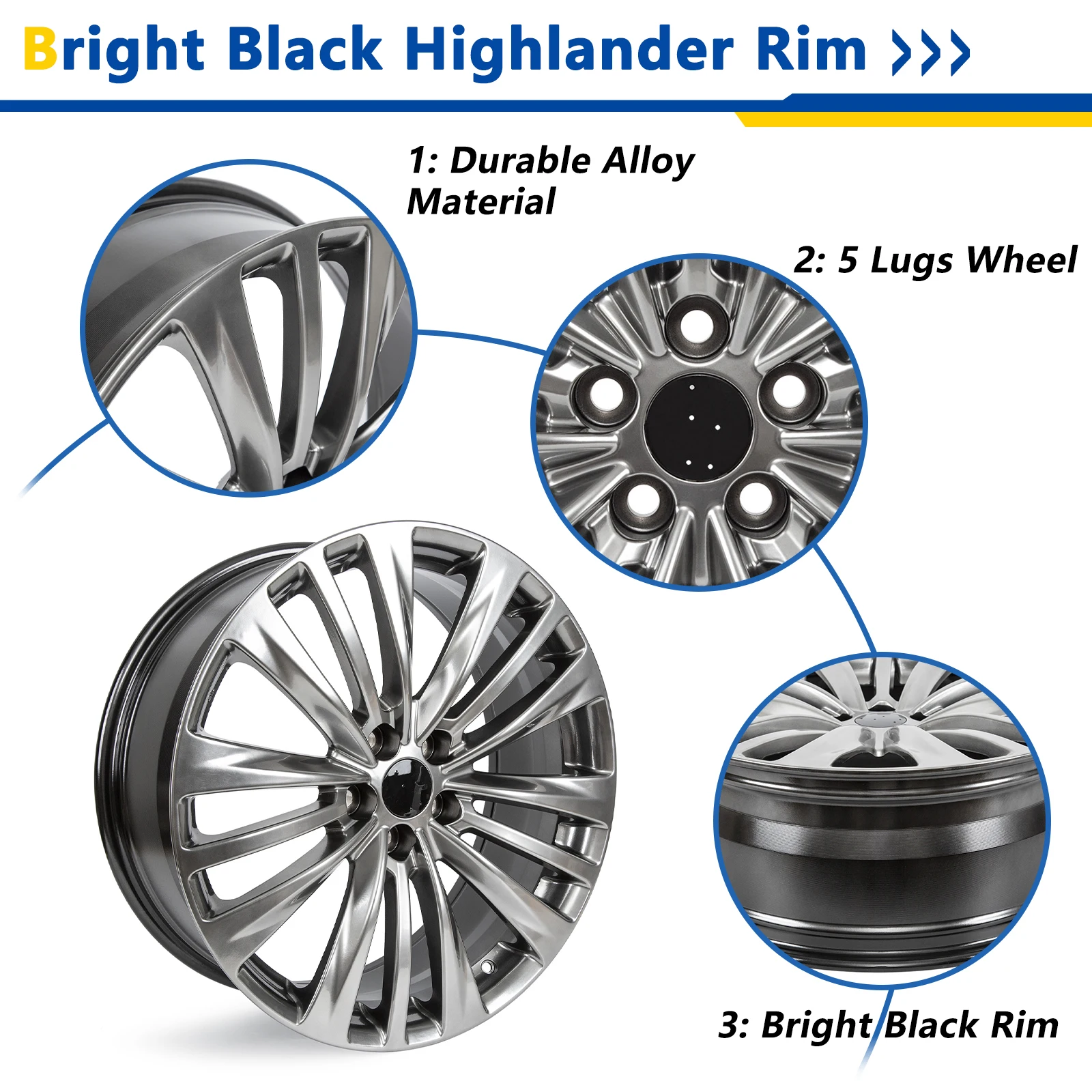 1/2/4pcs 20"X8" inches Gloss Black Aluminum Alloy Replacement Wheel Rims For 2020-2022 Toyota Highlander
