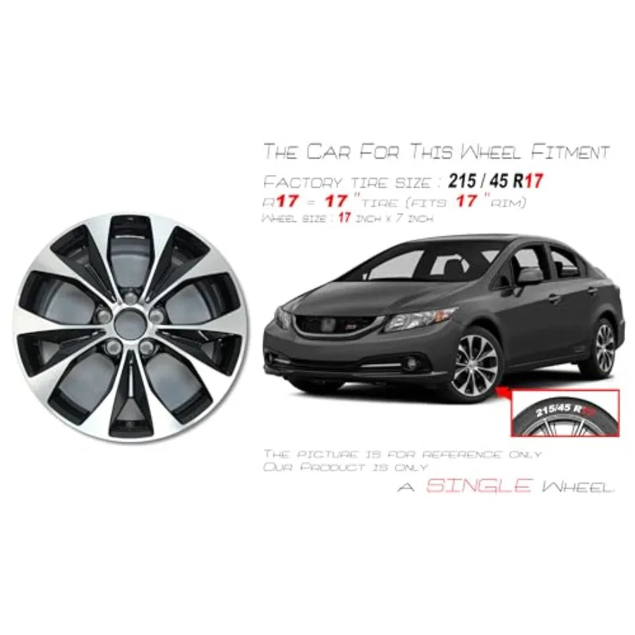 17"x7" Inch Replacement Wheel Rim For 2012-2014 Honda Civic OEM Design Wheel Machined Black Single Replacement Rim