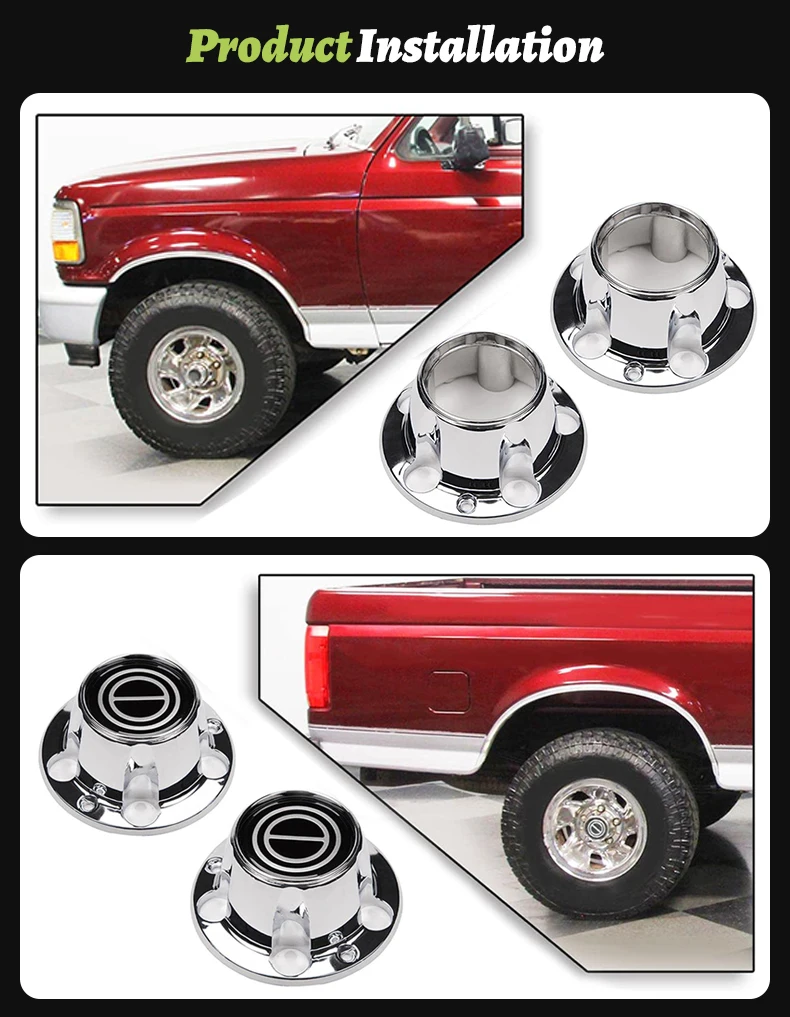 4pcs Wheel Hub Center Caps Compatible For 1980-1996 Ford F150 / Bronco / Van 4x4 Set of 4 Chrome Replacement Center Hub Caps