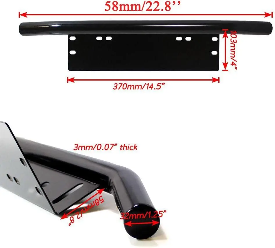 Easy to install: Universal mounting bracket using front license plate mount location without drilling and modification, also adding a nice front bull bar bumper to your vehicle.