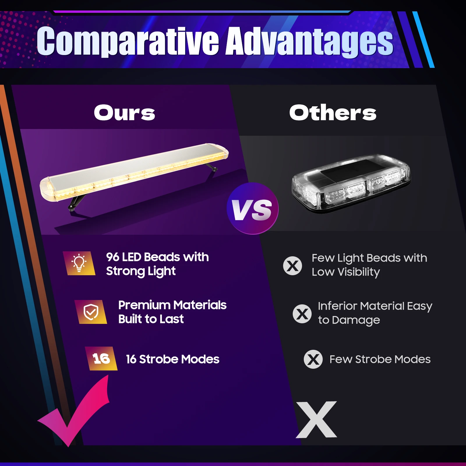 Stable Brackets: The fixed brackets can better ensure the stability of the strobe light bar in various driving conditions.