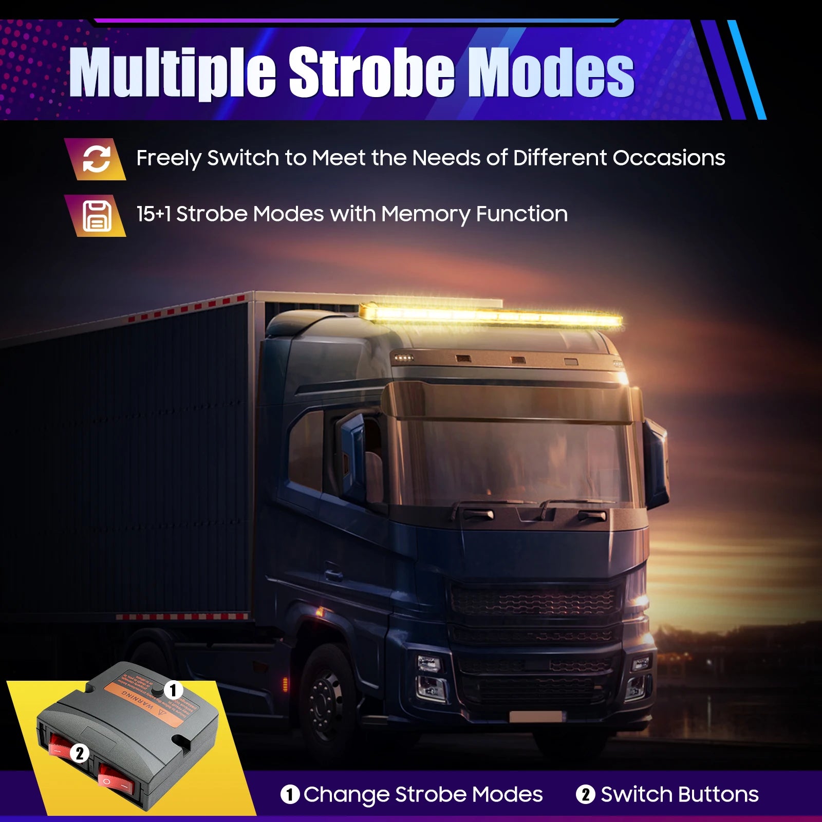 96 LED strobe beads can provide extremely strong light (150LM), which has strong visibility during the day, midnight, rainy, or snowy days, ensuring a significant safety warning effect. There are a total of 16 strobe modes (15 flashing modes + 1 steady mode) with memory function. It can be easily switched through the remote control to meet the needs of different occasions. It is compatible with vehicles equipped with DC 12V-24V power sockets. It is very suitable for emergency vehicles, postal services, construction vehicles, safety warnings, etc.