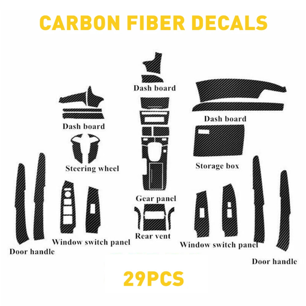29pcs 1Set Black 3D Carbon Fiber Decals Interior Decor Kits Trim Sticker For 2008-2012 Honda Accord Left Handed Driving
