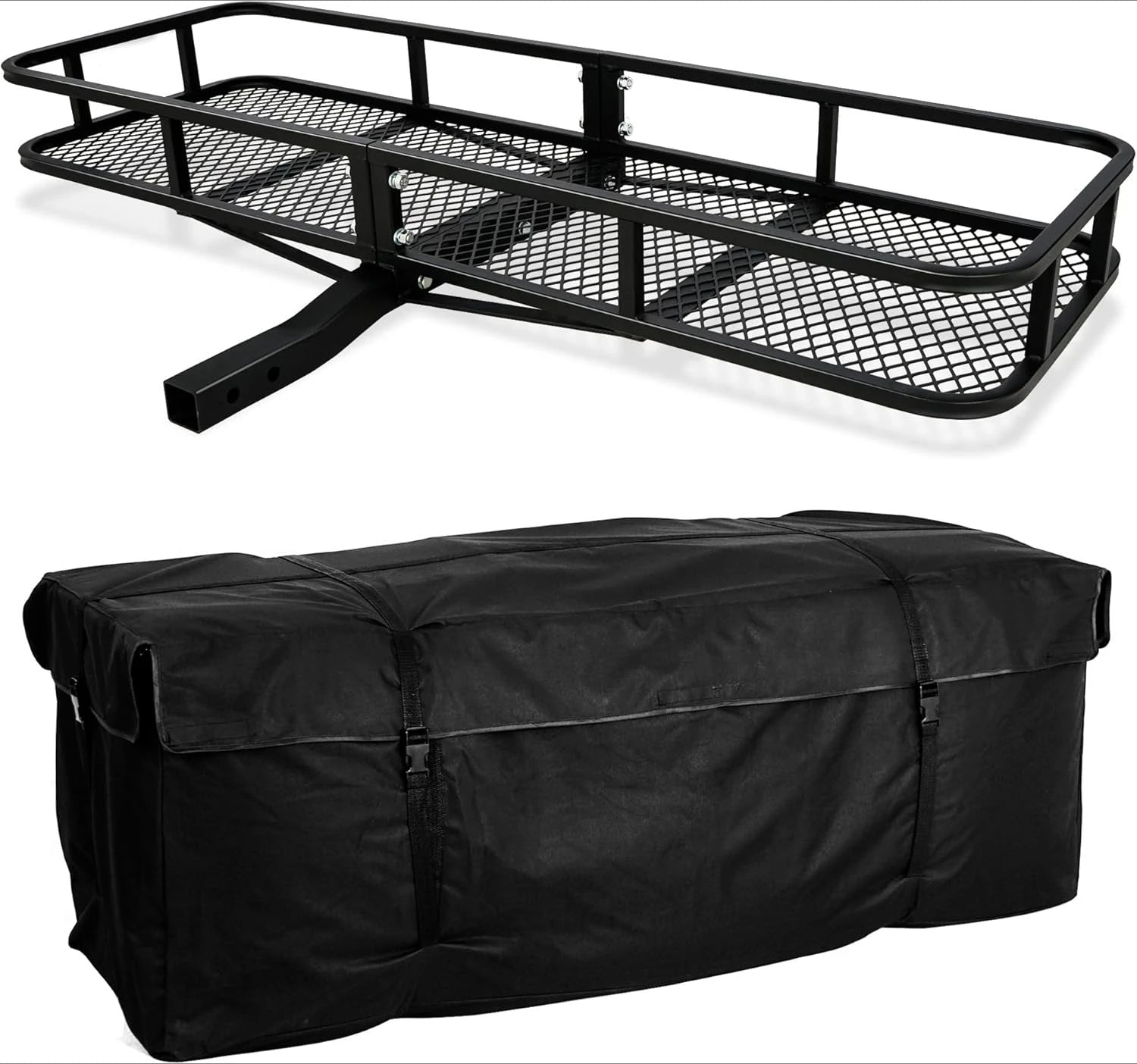 60"x20"x6" Inch Angled Cargo Rack Carrier with Waterproof Cargo Bag 500lbs For Camping Or Traveling, SUV, Pickup Truck or Car