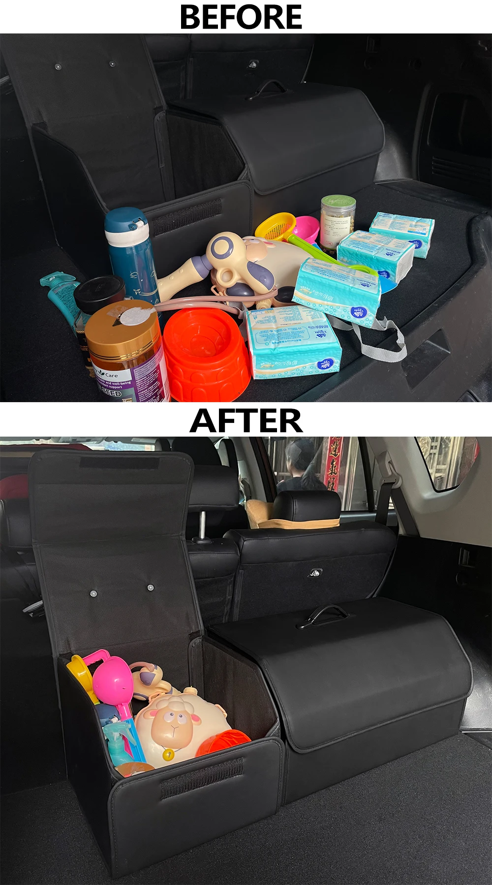 1.vehicle trunk organizer :comes with detachable for cars organizer, shopping, camping, road trips, picnic, etc.